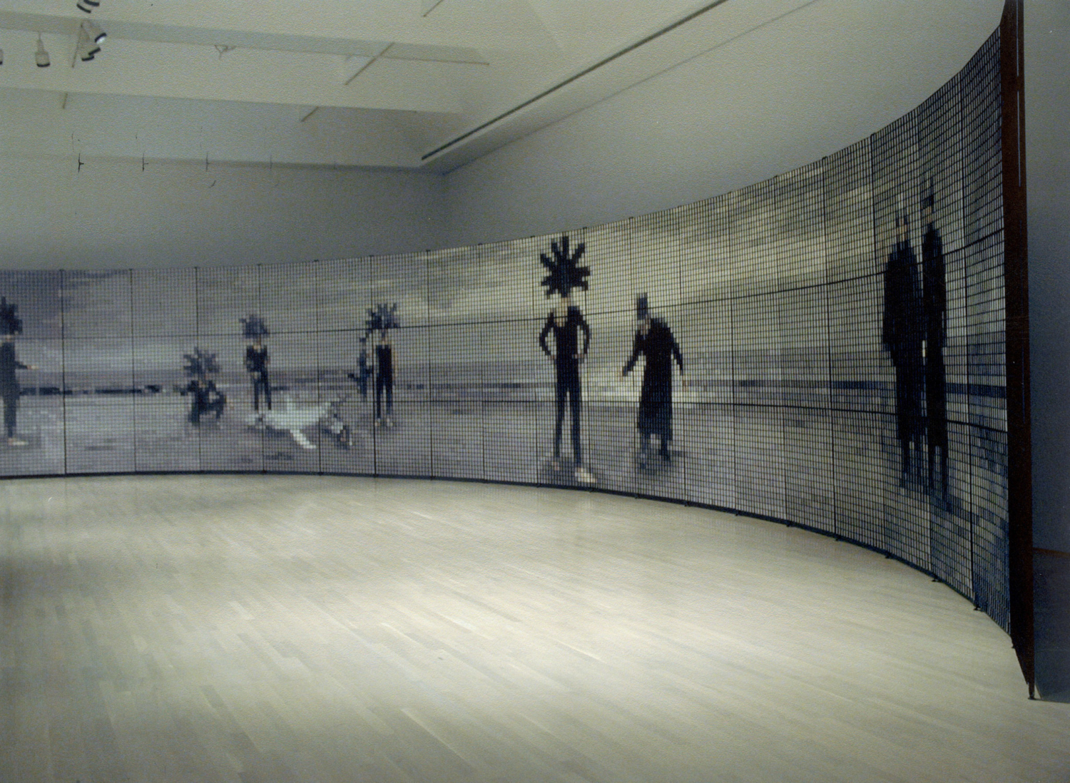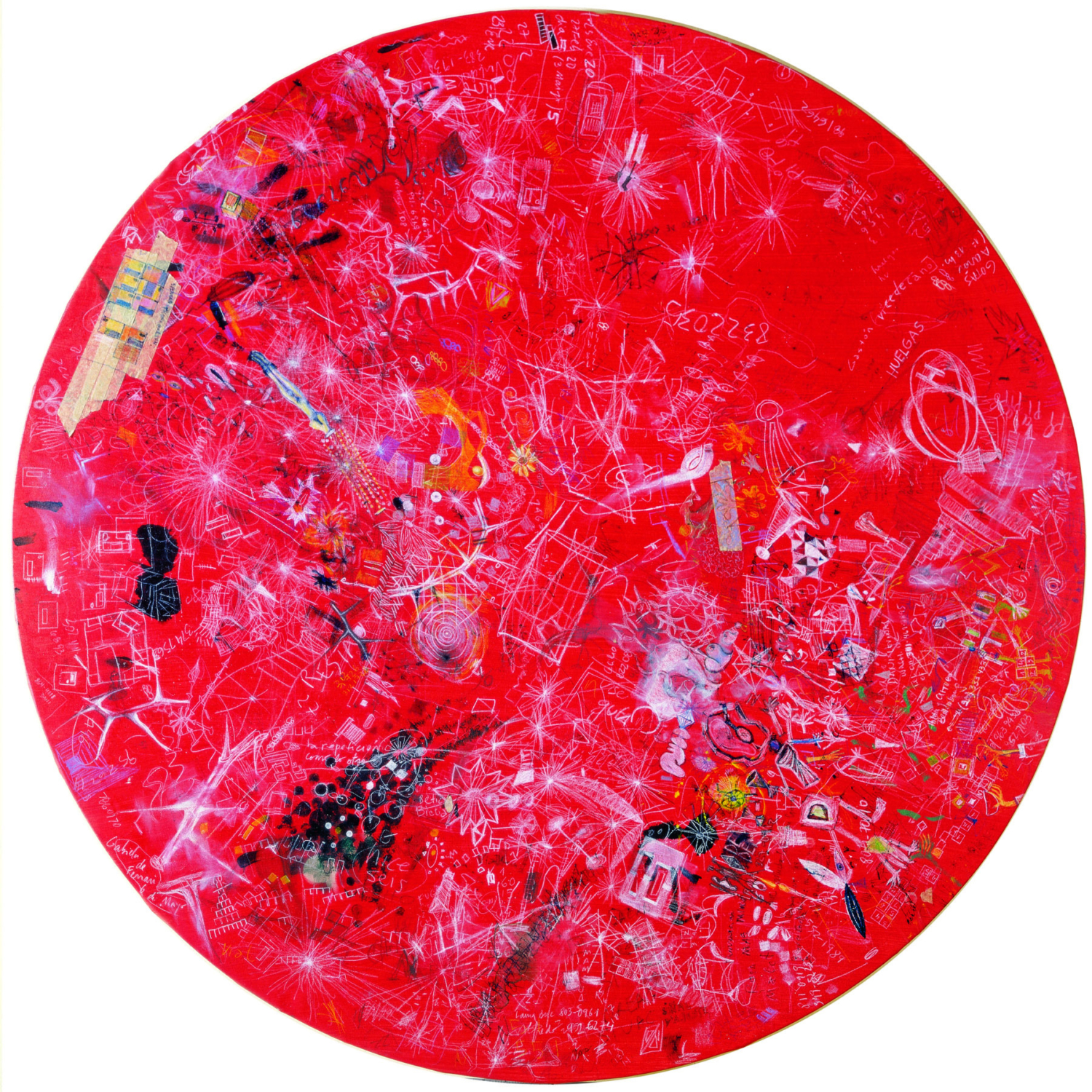 Im Angesicht der Landschaft zückt der aufmerksame Spaziergänger sein Skizzenheft, notiert erste Linien einer Komposition, skizziert diese oder jene Besonderheit und nimmt in gewisser Weise in geografischer wie in metaphorischer Hinsicht an der sich vor seinen Augen ausbreitenden Landschaft Maß, während sein Gedächtnis sich in diesem Moment erst zu formen beginnt. Es ist dieser Bezug zum Raum, aber auch zur Zeit, der in der Ausstellung Walking through… zum Thema wird. Die Reihe der 19 Tondi von Kuitca stellt so regelrecht ein „Tagebuch” dar, auf dem nahezu täglich, von 1994 bis 2000, die malerischen, zeichnerischen, geschriebenen und gekritzelten Notizen des Künstlers verzeichnet wurden, und dies auf einer wiederverwendeten Leinwand, die über einen Gartentisch gelegt wurde. Im Laufe der Zeit legten sich Farben und Motive übereinander, so dass wie in einem Palimpsest keine der Schichten vollkommen verloren ging. Von einem bestimmten Moment an sind die Bilder für den Künstler vollendet, woraufhin er ein neues beginnt. Auf diese Weise haben sich dann die Stimmungen des Augenblicks, die Flüchtigkeiten der Launen und die Fragmente der Zeit in jeden einzelnen der Tondi eingeschrieben.