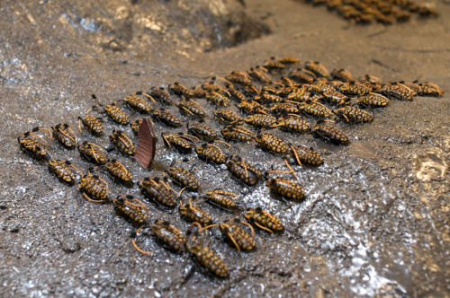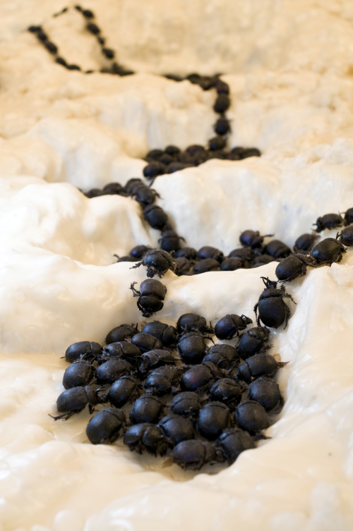 Jan Fabre (1958), Theatermacher, bildender Künstler und Selbstdarsteller, verwendet in seinem in den unterschiedlichsten Formen wuchernden Werk seit langen Jahren Käfer in großer Zahl. Fabre nutzt die meist exotischen Käfer wie die meisten anderen der von ihm verwendeten Materialien gleichermaßen in metaphorischer Hinsicht wie in ihrer unmittelbar sinnlichen Wirkung. Insekten, und insbesondere Käfer, lösen sowohl eine Reihe von Assoziationen als auch eine Fülle unkontrollierbarer Empfindungen aus.